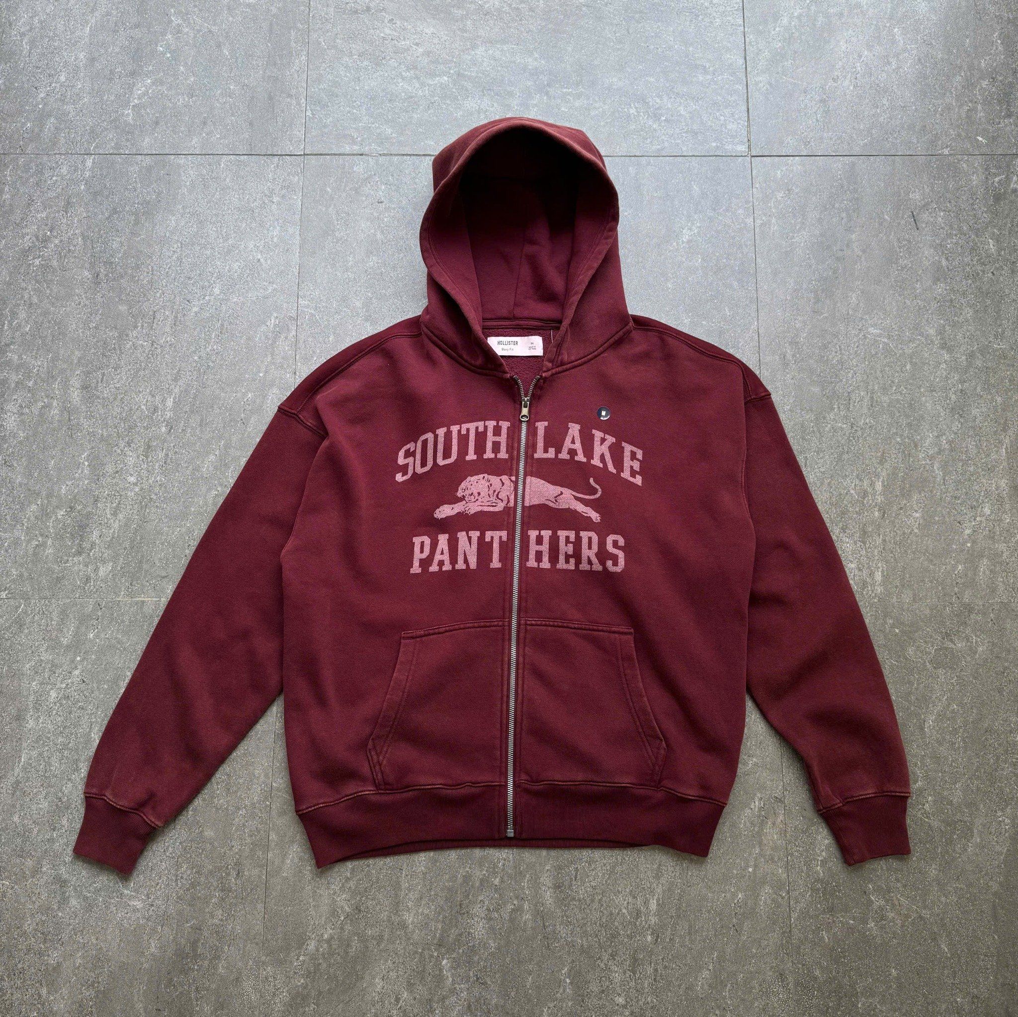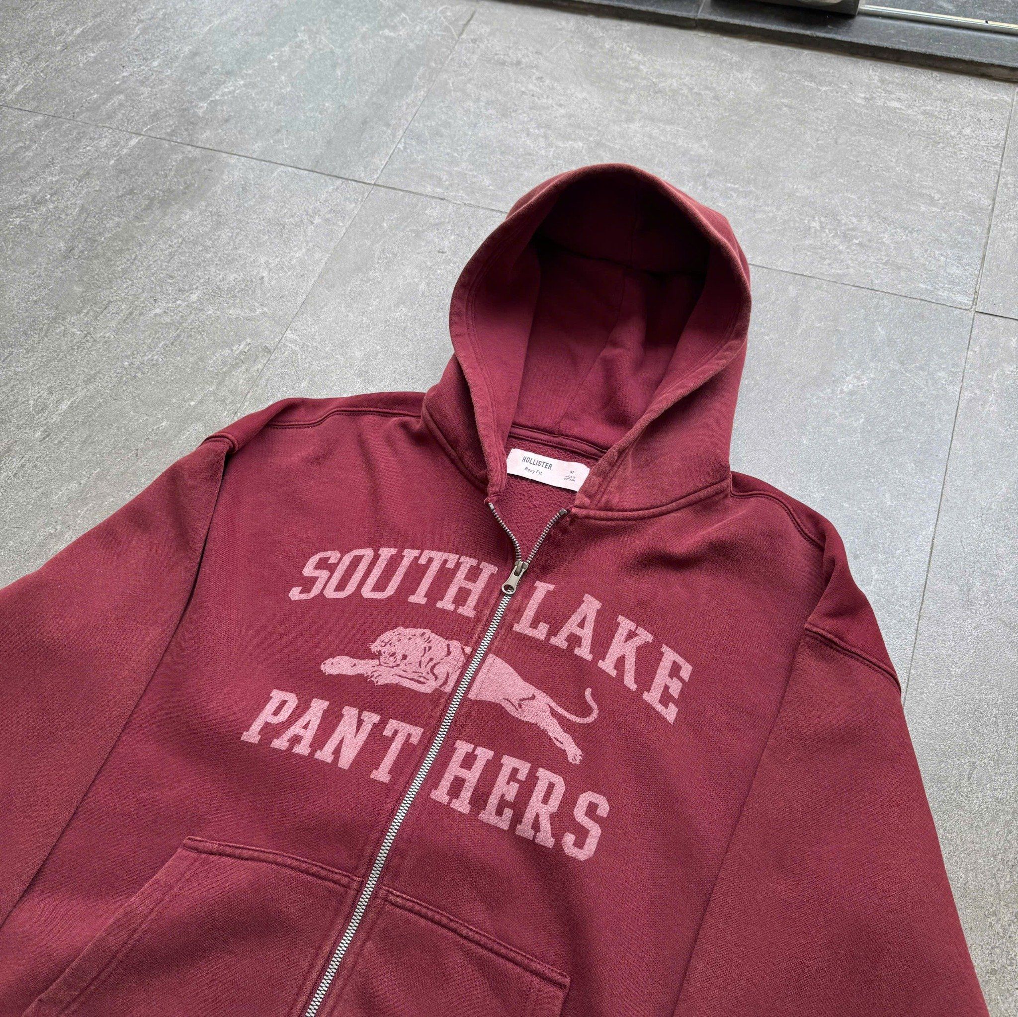 Áo hoodie ZIP Hollister đỏ washed - PANTHERS